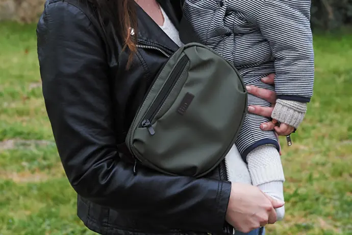 Smidig och kompakt midjeskötväska för föräldrar som vill ha det viktigaste nära till hands.